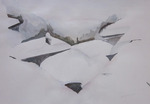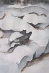Aquarellen en acrylschilderijen met als thema sneeuw, kou. Meestal in de bergen